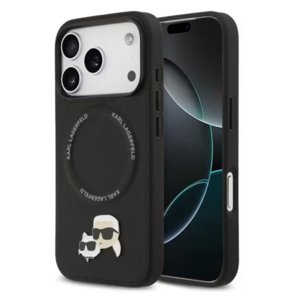 Karl Lagerfeld PU Leather Case with Karl & Choupette Head Pins for iPhone 17 Pro Max