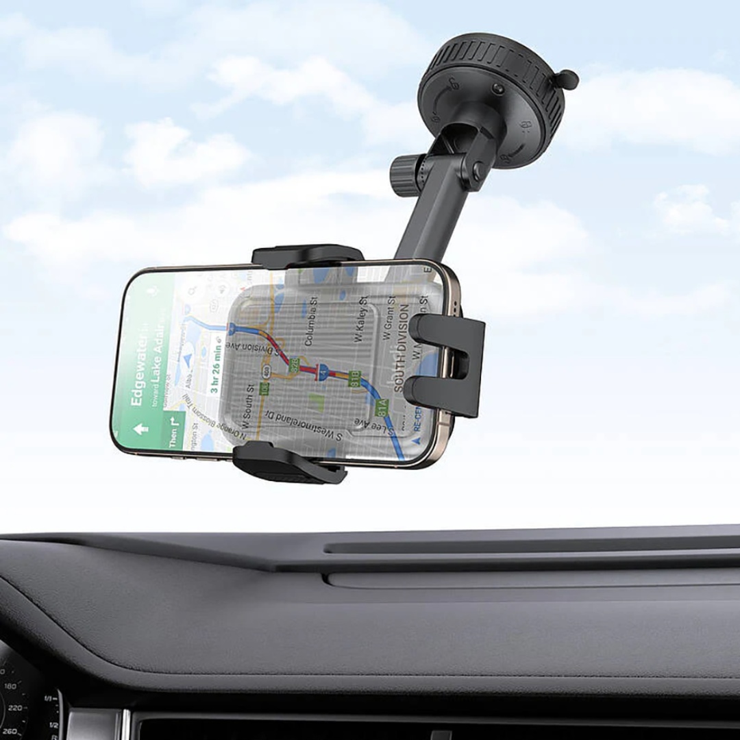 Achieve the perfect viewing angle for any task. The holder features a fully rotatable head that allows for 360° adjustable viewing angle. You can effortlessly switch between portrait and landscape modes, optimizing your screen for Google Maps navigation, Waze alerts, hands-free calls, or streaming media during a break. This flexibility ensures you always have a clear, comfortable view without straining your neck or eyes.