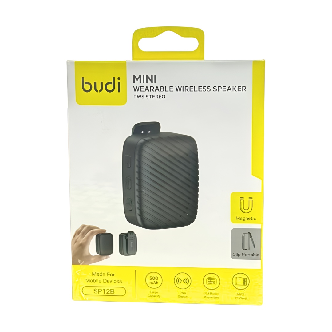 The Budi Mini Wearable Wireless Speaker (Model SP128) delivers an exceptional combination of audio performance, portable convenience, and versatile functionality designed specifically for Lebanese users’ dynamic lifestyles. The innovative magnetic clip design provides unprecedented wearing flexibility, while the genuine TWS Stereo capability creates an immersive listening experience that surpasses typical portable speakers. The substantial 500mAh battery capacity ensures reliable performance during daily use, and the Multiple Playback Options guarantee entertainment access across various scenarios. Available through authorized retailers, the Budi Mini Wearable Wireless Speaker represents outstanding value for Lebanese consumers seeking a feature-rich audio solution that combines impressive sound quality with practical wearable design, making it the perfect audio companion for students, professionals, travelers, and outdoor enthusiasts throughout Lebanon’s diverse environments and activities.