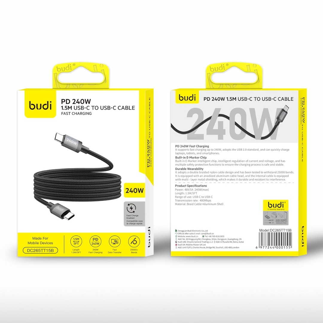 Budi PD 240W 1.5 USB-C to USB-C Cable Fast Charging
