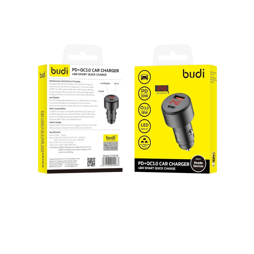 The Budi PD+QC3.0 Car Charger 48W (Model CC601B) represents a significant advancement in automotive charging technology, delivering sophisticated Smart Quick Charge capabilities for Lebanese drivers and commuters. This innovative charger combines PD 30W and QC3.0 18W outputs through dual dedicated ports, providing optimal charging for a wide range of devices simultaneously. The integrated Led Display offers real-time voltage monitoring, while the premium Aluminuim Shell ensures superior heat dissipation and durability. With total 48W power output, this intelligent charging solution automatically detects connected devices and delivers the fastest possible charge, making it ideal for professionals, families, and ride-sharing drivers across Lebanon’s road networks.