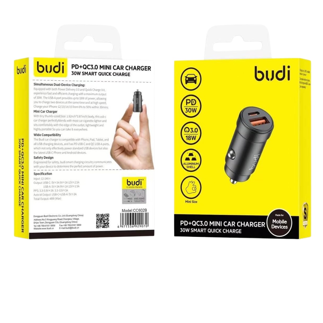 Budi PD+QC3.0 Mini Car Charger – 30W Smart Quick Charge