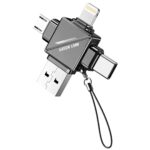 With a transfer speed of 480Mbps via USB 2.0, the Green Lion 4 in 1 TF Card Reader – Gray provides uninterrupted data transfer. This wonderful card reader supports TF cards of up to 2TB and offers USB-C, USB-A, Lightning, and Micro USB connectivity to be compatible with a large number of devices like Windows, Android, and macOS. Made from zinc alloy for durability and lightweight nature, it is perfect for daily carry. The package also includes connecting lanyard chains for the ultracompact design to assist in taking this card reader virtually anywhere. Being plug and play, no additional software or drivers are needed to be pondered to annoy you. Therefore, with universal compatibility, this card reader is just waiting to aid in fast data transfer between various devices.