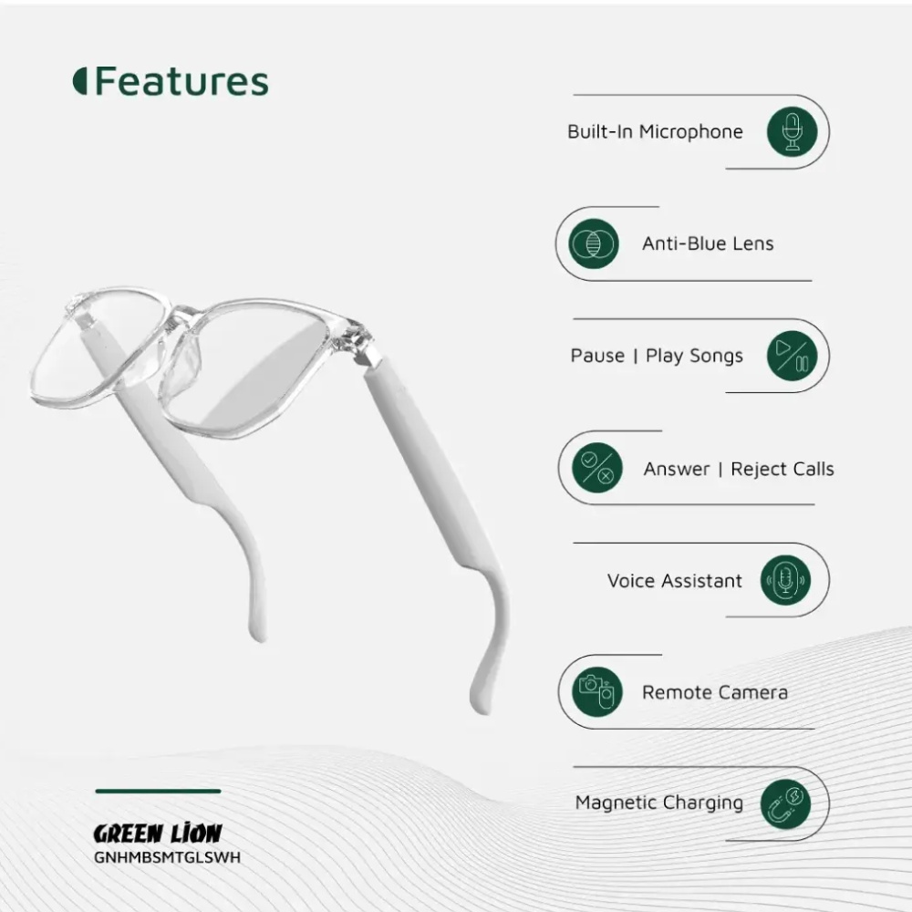The Green Lion Hamburg Smart Glasses are the perfect combination of style and technology for a hands-free experience. Designed with an anti-blue lens and UV400 protection, they reduce eye strain while offering clear vision.