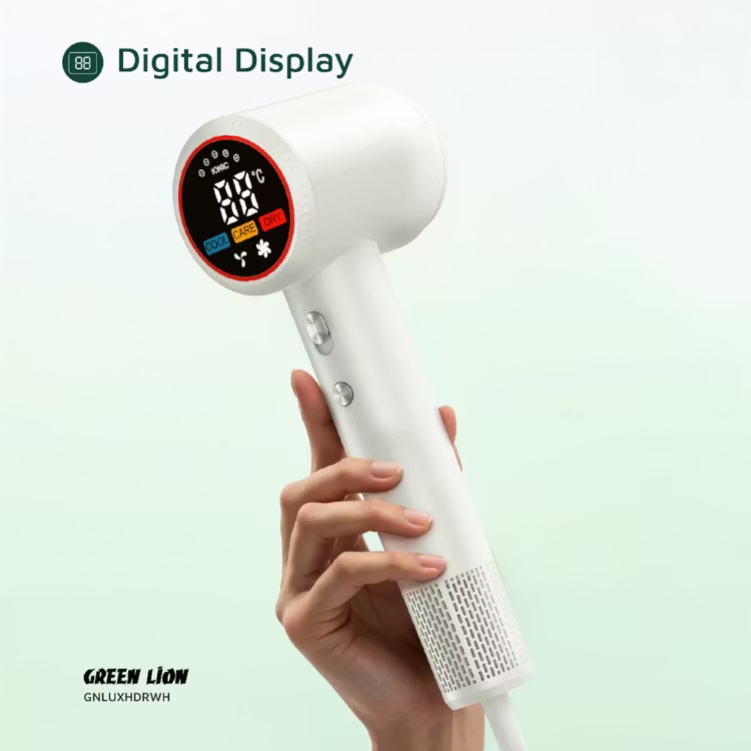 Stay informed with the Green Lion LUXAIR Hair Dryer clear digital display that shows active temperature settings and operational status at a glance. This smart interface allows Lebanese users to monitor their heat selections and make instant adjustments based on their hair’s needs during styling. The Green Lion LUXAIR Hair Dryer display enhances user experience by eliminating guesswork and ensuring consistent results across different styling sessions. The visual feedback is especially helpful for achieving repeatable results and maintaining hair health through proper temperature management.