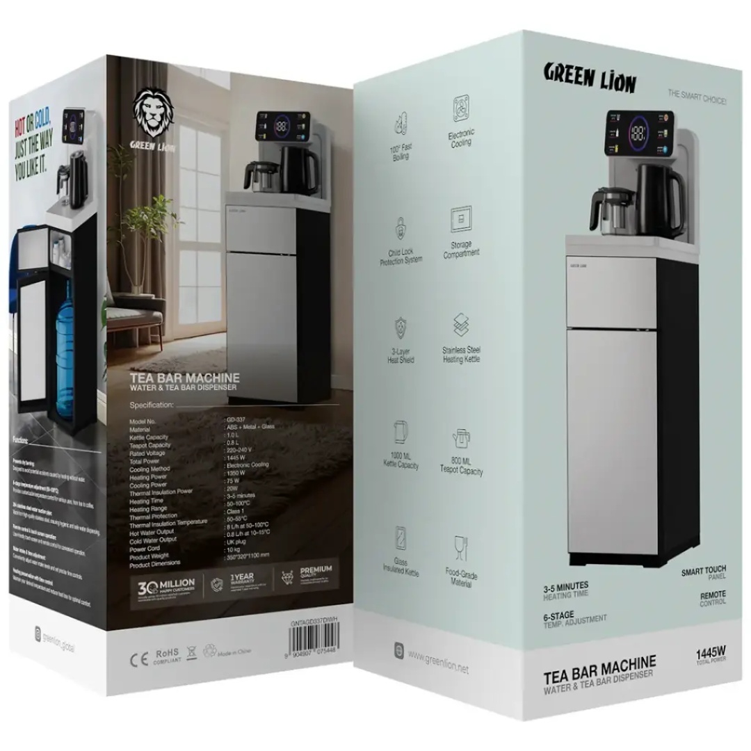 The Green Lion Tea Bar Machine revolutionizes hot beverage preparation across Lebanon with its advanced dual-function design that combines rapid heating with electronic cooling capabilities. This sophisticated appliance meets the diverse drinking preferences of Lebanese households by delivering both piping hot water for traditional tea and chilled water for refreshing cold beverages. The Green Lion Tea Bar Machine features premium construction using ABS, metal, and glass materials, ensuring durability while maintaining aesthetic appeal in modern Lebanese kitchens. With its impressive 1445W total power and intelligent temperature control system, this tea bar dispenser provides unmatched convenience for tea enthusiasts and families throughout Lebanon.