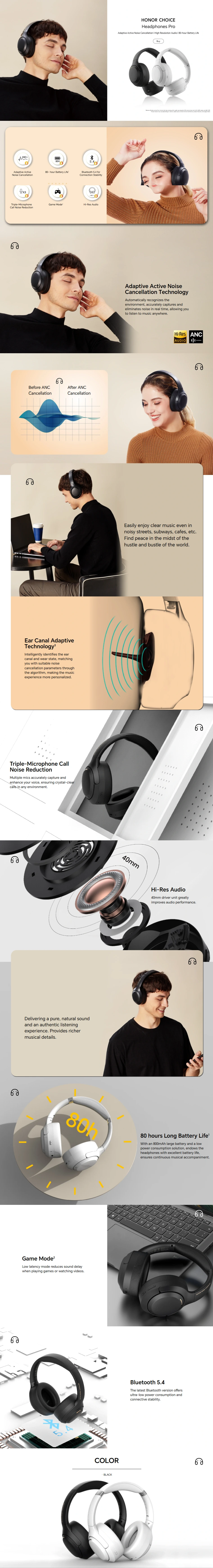 Immerse yourself in uninterrupted audio excellence with the HONOR CHOICE Headphones Pro, engineered to deliver exceptional endurance and intelligent sound management for users across Lebanon. The standout feature of these headphones is their extraordinary 80-hour battery life, allowing you to enjoy weeks of listening on a single charge—perfect for long trips, extended work sessions, or simply forgetting about daily charging. This marathon endurance is complemented by sophisticated Adaptive Active Noise Cancellation (ANC) that intelligently adjusts to your environment, and Hi-Res Audio certification for studio-quality sound. With Bluetooth 5.4 for rock-solid connectivity, these headphones are the ultimate wireless audio solution for Lebanese commuters, professionals, and audiophiles.