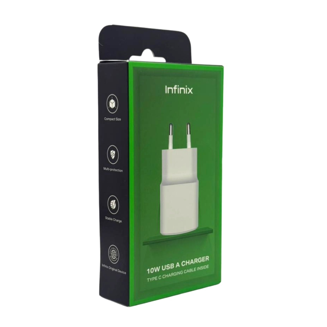 The Infinix 10W USB A Charger delivers dependable charging performance in a compact, safe package designed specifically for Infinix devices and other compatible smartphones. This original Infinix accessory combines essential charging capabilities with comprehensive protection features, ensuring your devices receive stable power while safeguarding against electrical hazards. With its included Type-C charging cable and thoughtfully engineered design, the Infinix 10W Charger provides peace of mind through reliable performance and built-in safety mechanisms that protect your valuable devices during every charging session.