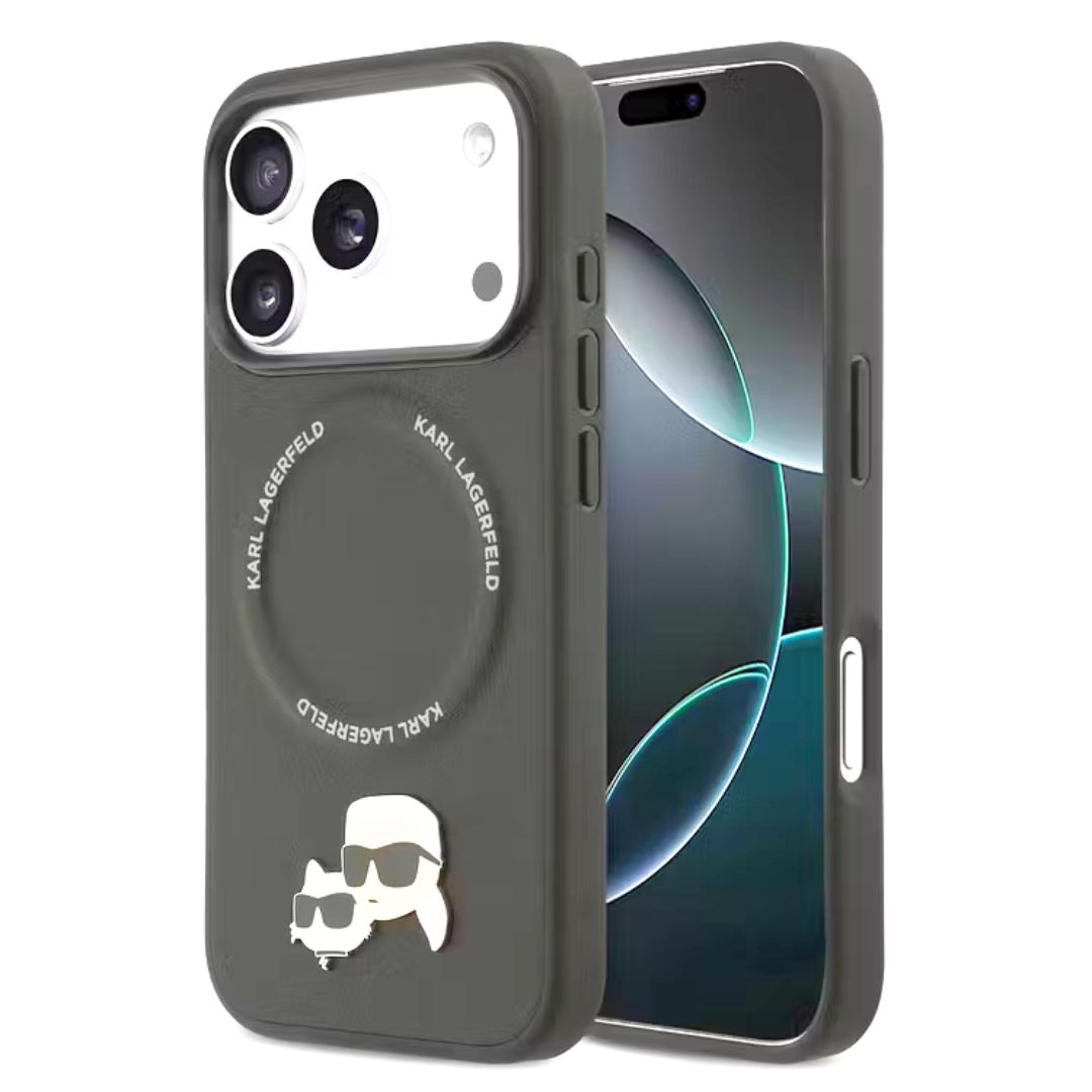 Karl Lagerfeld PU Leather Case with Karl & Choupette Head Pins for iPhone 17 Pro Max