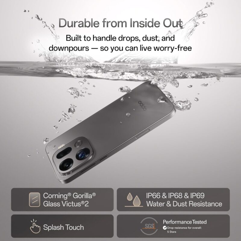 The device launches with the latest Android 16, overlaid with OPPO’s feature-rich and sleek ColorOS 16. OPPO commits to 5 years of major Android OS upgrades and security patches, ensuring long-term relevance and security. User convenience is maximized with a lightning-fast ultrasonic under-display fingerprint sensor and flexible Hybrid Dual SIM support (either two nano-SIMs or one nano-SIM + one eSIM) for seamless management of personal and business lines.