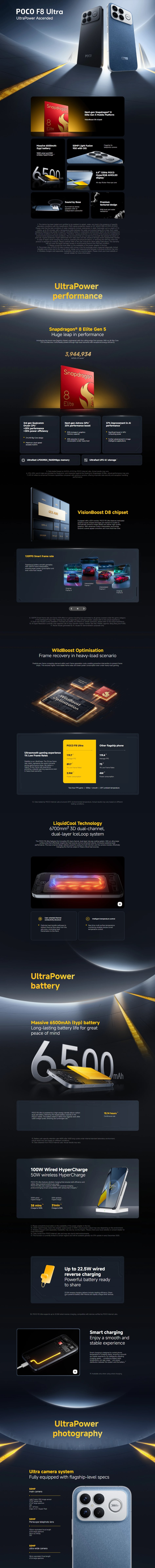 The POCO F8 Ultra is built for non-stop use. The huge 6500mAh battery provides exceptional multi-day battery life, while the industry-leading 100W wired charging can fully recharge the phone in under 30 minutes. For added convenience, it also supports 50W wireless charging, offering a fast, cable-free power-up experience. This combination completely eliminates battery anxiety.