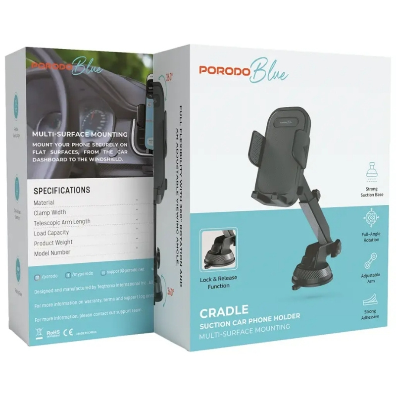Key Specifications & Features of the Porodo Blue Cradle Suction Car Phone Holder: