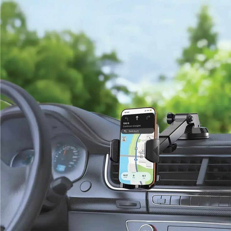 For Daily Commuters: The Porodo Blue Cradle Suction Car Phone Holder keeps your phone accessible for navigation through city traffic.