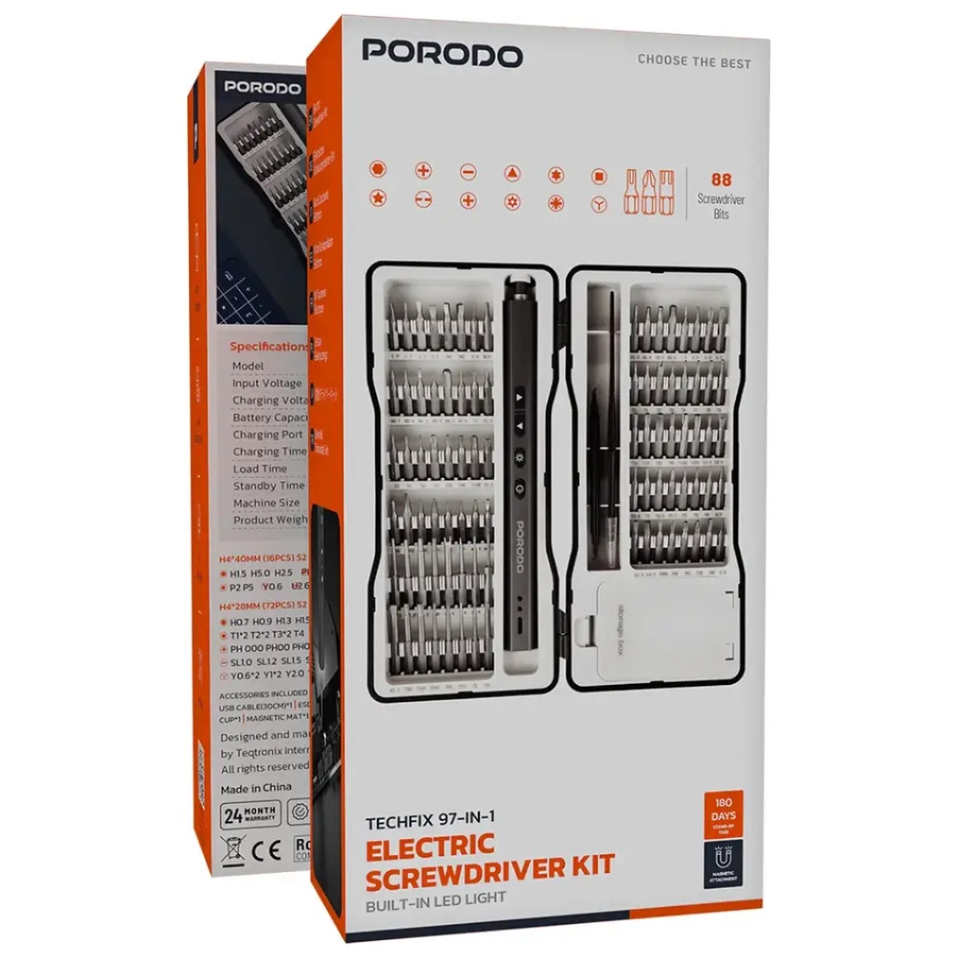 • Model: Porodo TechFix 97-in-1 Electric Screwdriver Kit
