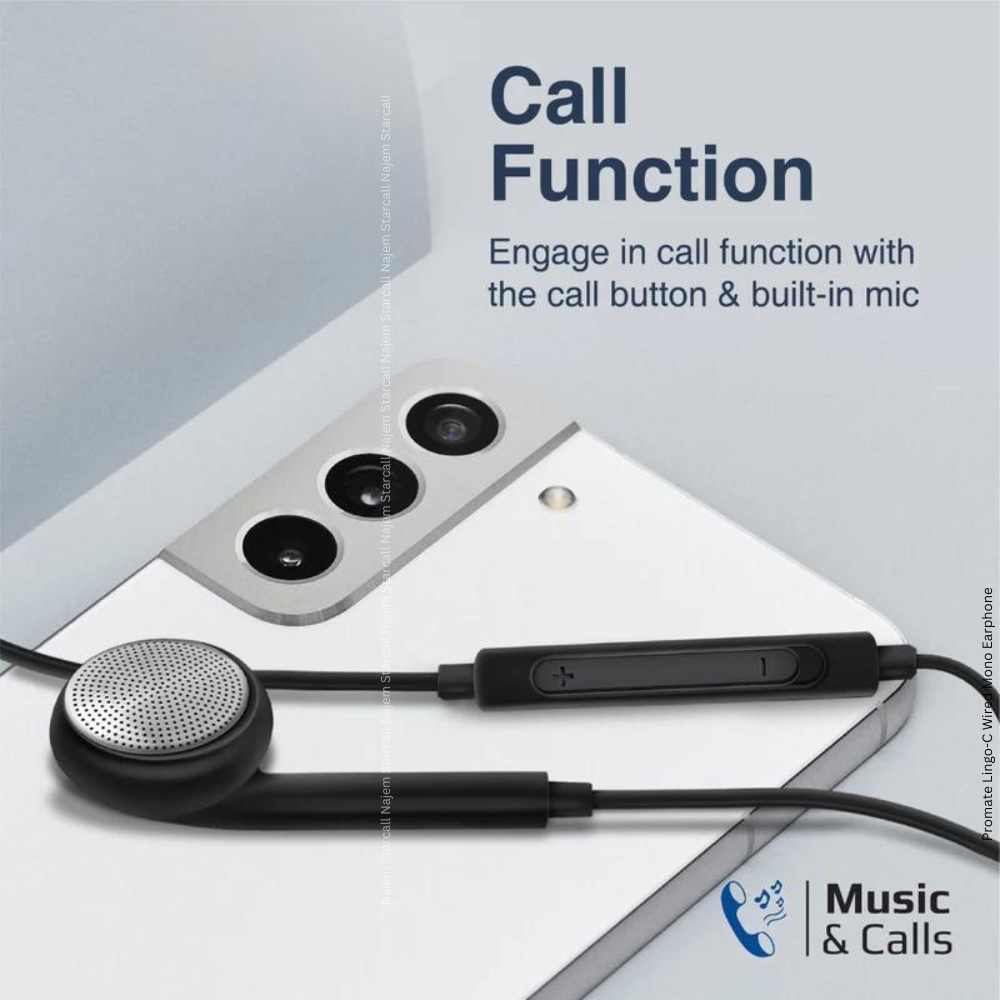Promate Lingo-C Wired Mono Earphone designed to provide rich & balanced call quality.