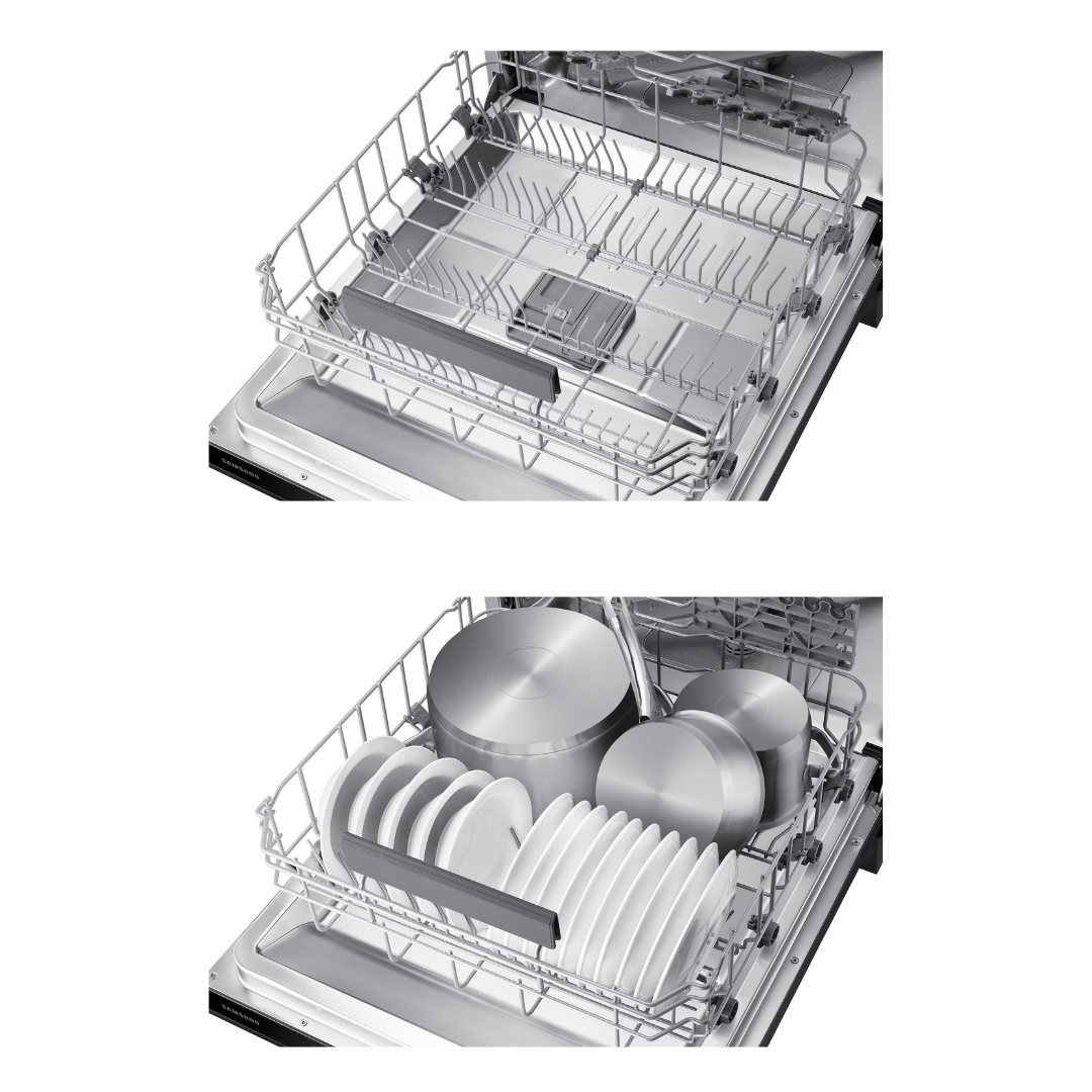 Flexible Loading: Adjustable racks fit tall glasses and wide platters