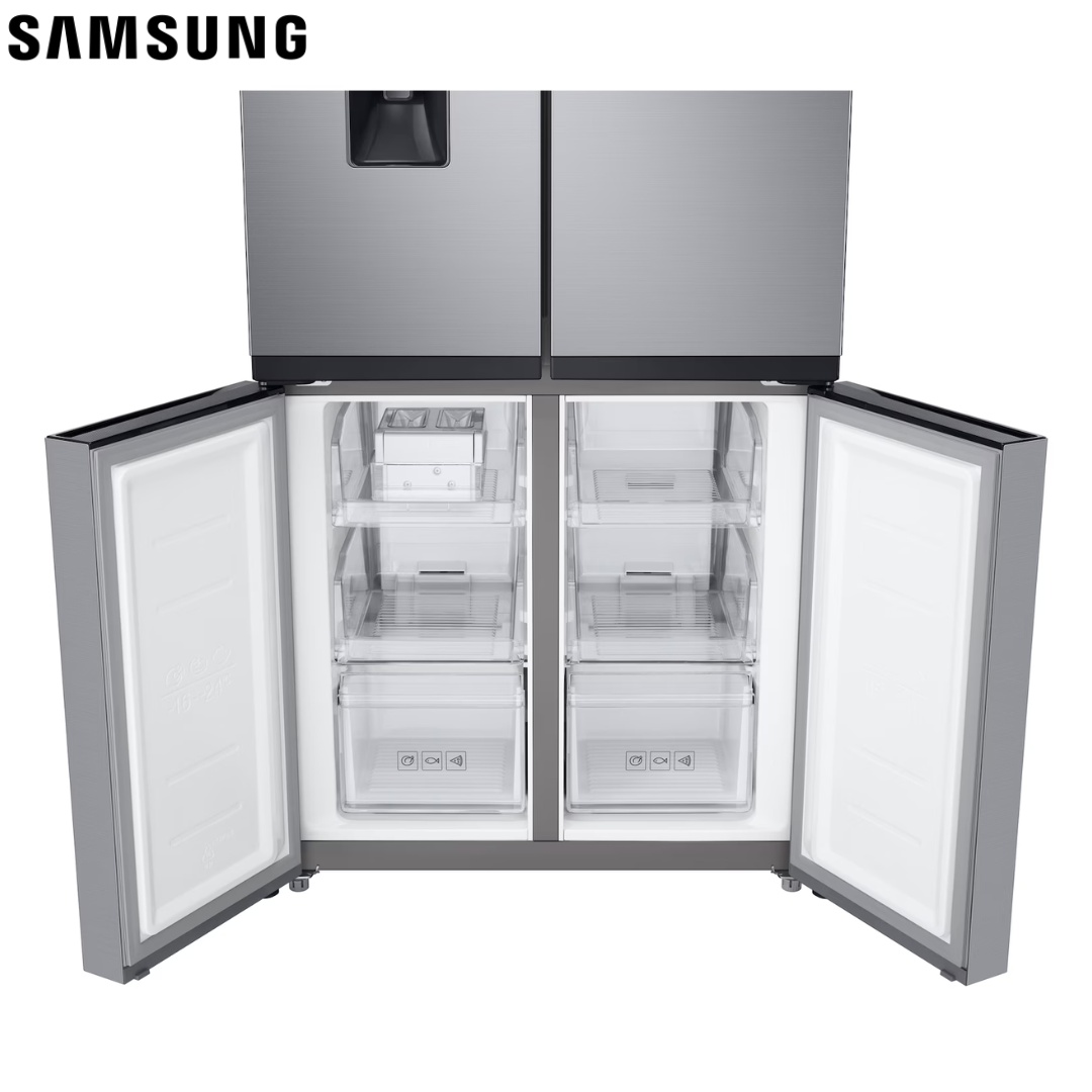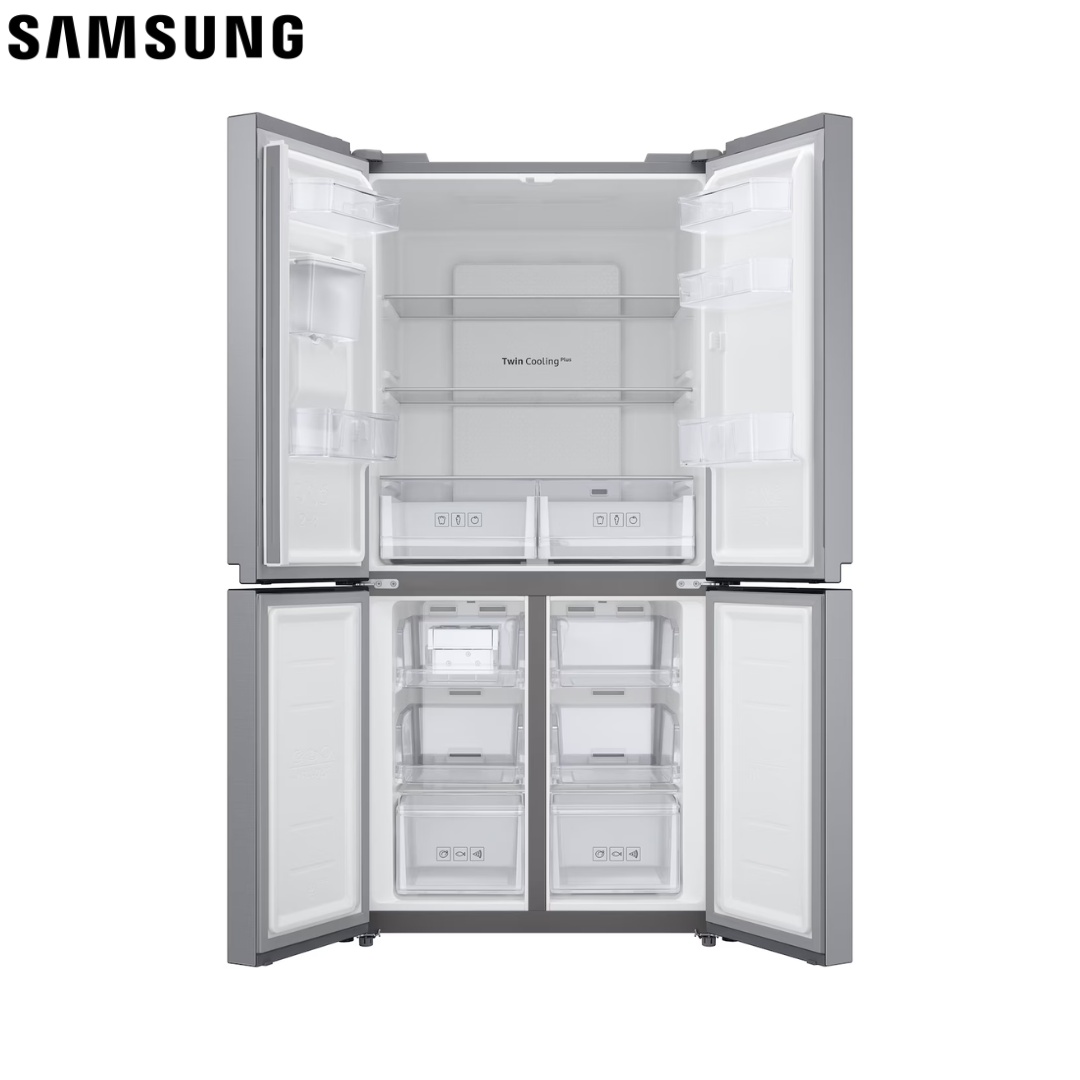 As an Official Samsung BMS Partner in Lebanon, we introduce the sophisticated Samsung French Door Refrigerator with 466L net capacity (Model: RF48A4010M9/LV), featuring premium French door design combined with advanced cooling technology. This refrigerator offers Twin Cooling Plus for optimal humidity control, a convenient non-plumbing water dispenser, and Digital Inverter Technology for energy efficiency. With fast cooling and freezing on demand, a modern and sleek design, and a movable ice maker for flexible organization, it represents the perfect blend of style and functionality. The frost-free operation eliminates maintenance hassle, while optimal humidity ensures lasting freshness for your groceries. Backed by a 1-Year BMS Warranty, it’s available nationwide for discerning Lebanese households.
