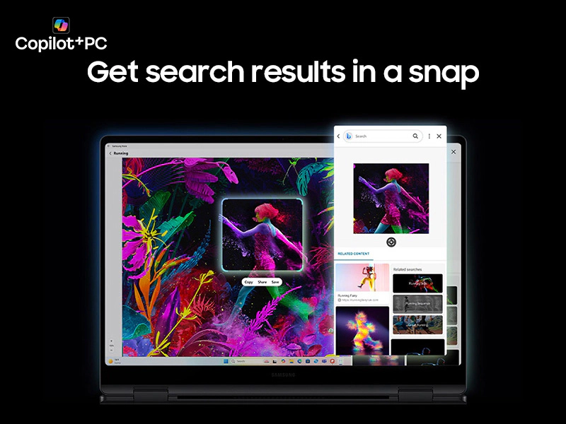 • AI Select: Search right on your PC screen without typing. Simply trace an image, text message, or QR code using your cursor or finger, and get search results on the fly .