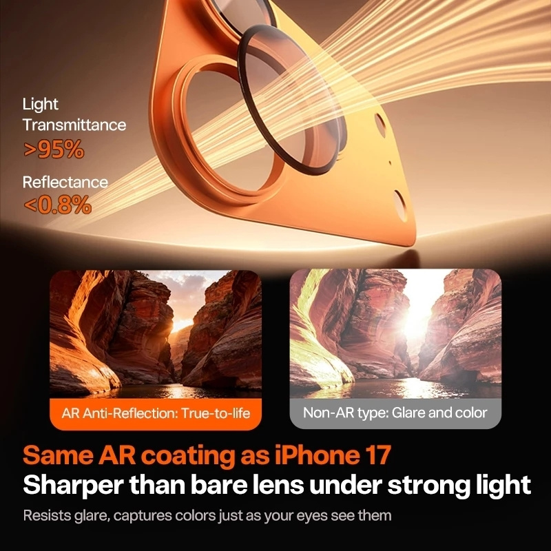 The TORRAS AR Anti-Reflection Camera Lens Protector stands out with its seamless full-cover design that provides complete protection for every camera lens on your iPhone 17 Pro Max. Unlike basic protectors that only cover individual lenses, this comprehensive solution shields the entire camera module, including the surrounding area. The perfect color match with your new iPhone ensures the protector blends flawlessly with your device’s finish—whether you have the natural titanium, white, black, or other color options. This attention to aesthetic detail makes the TORRAS camera protector the best full coverage camera lens for iPhone 17 Pro Max for users who refuse to compromise on style.