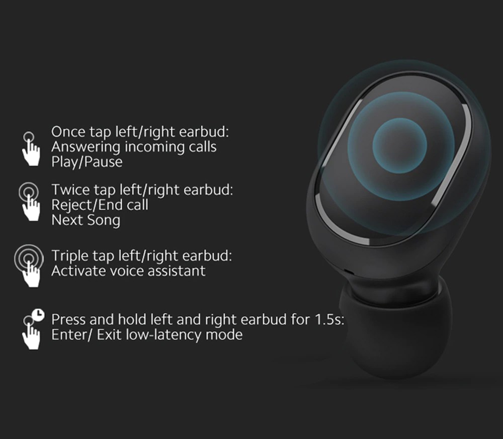 - Gaming mode: long press both earbuds for 1.5S at the same time to activate low latency mode