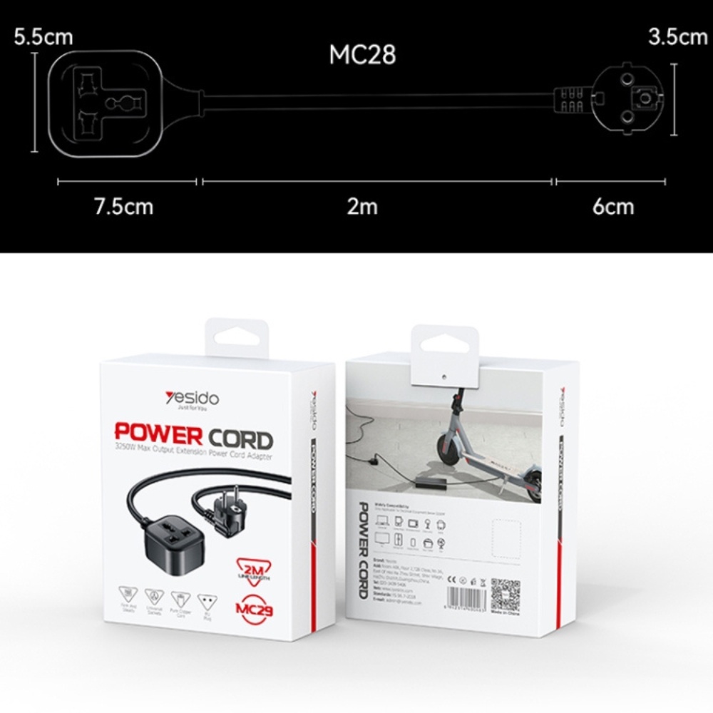 Yesido MC29 EU Plug to Universal Plug Power Extension Cable